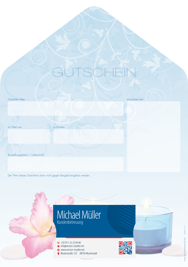 Ihr einzigartiges Mittel zur Neukundengewinnung! Bieten Sie Ihrem Kunden eine praktische Geschenkidee: Geschenkgutscheine sind beliebt, modern und das beste Cash-Sofort-Leistung-Später-Instrument. Die Gutscheinkarte Classic bietet neben der einfachen Faltart zu einem Kuvert noch Einschublaschen für Ihre Visitenkarte, die als Werbemedium nicht fehlen darf. Sie zeichnet sich durch hochwertige Materialien und der "Stempel-Sofort-Trocken-Garantie" aus.